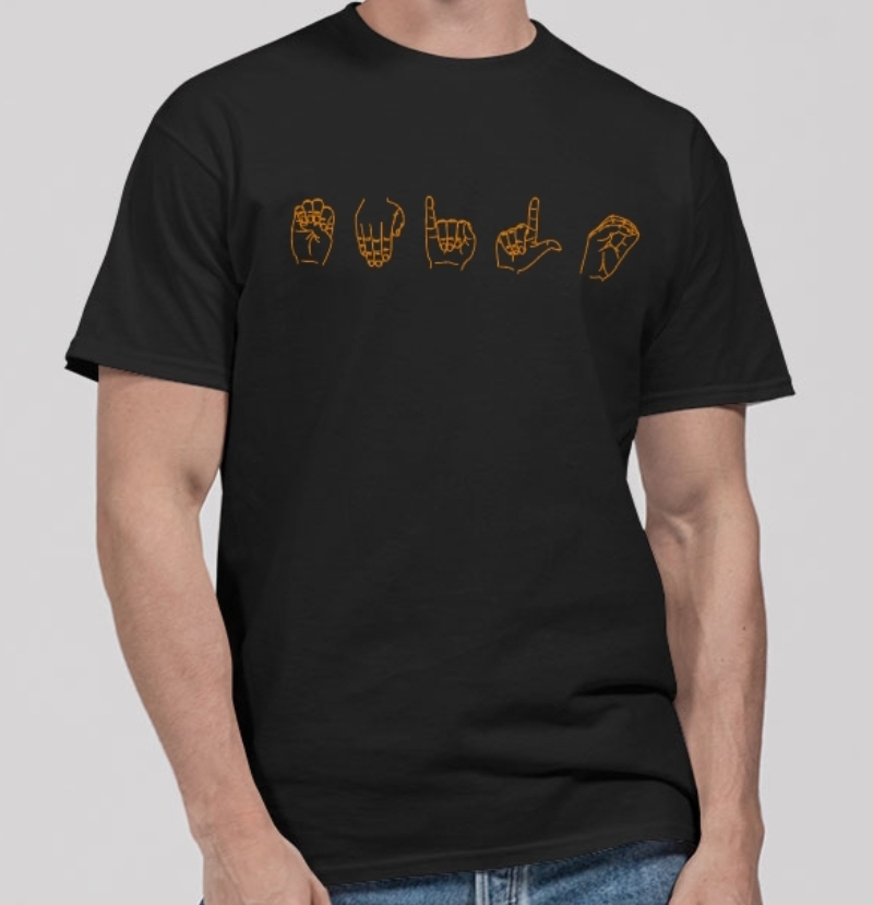 Denne T-shirt kan du få med dit eget navn trykt i håndalfabetet! Du vælger helt selv både T-shirtens farve og trykfarven.