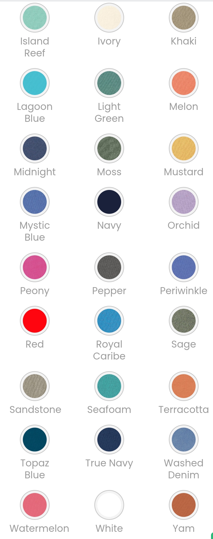 Se billederne for at få et overblik over, hvilke farver du kan få tøjet i.