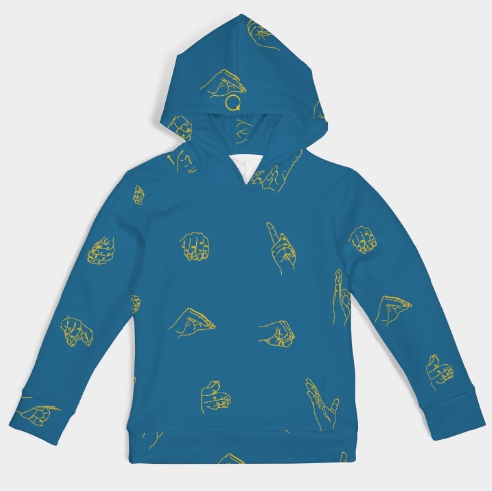 Denna hoodie bygger vidare på min populära affischdesign med det svenska handalfabetet – men nu i en ännu mer djärv och lekfull version. Här har jag släppt de klassiska ”alfabet-i-en-låda”-ramarna och låtit handtecknen sprida sig fritt över hela tyget. Ett uttryck med kant, rörelse och budskap.